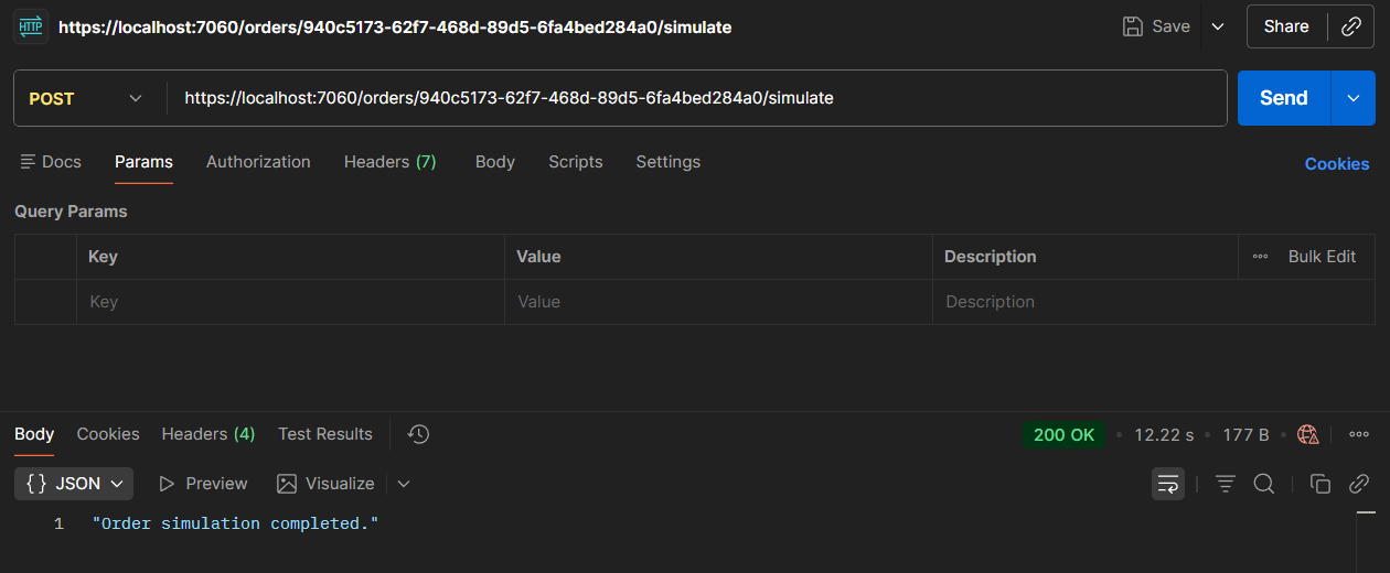 app.MapPost("/orders/{orderId:guid}/simulate", async ( Guid orderId, OrderStreamService streamService) => { var statuses = Enum.GetValues<OrderStatus>(); foreach (var status in statuses) { await Task.Delay(2000); await streamService.PublishAsync(new OrderStatusUpdate( orderId, status, DateTime.UtcNow)); } return Results.Ok("Order simulation completed."); });